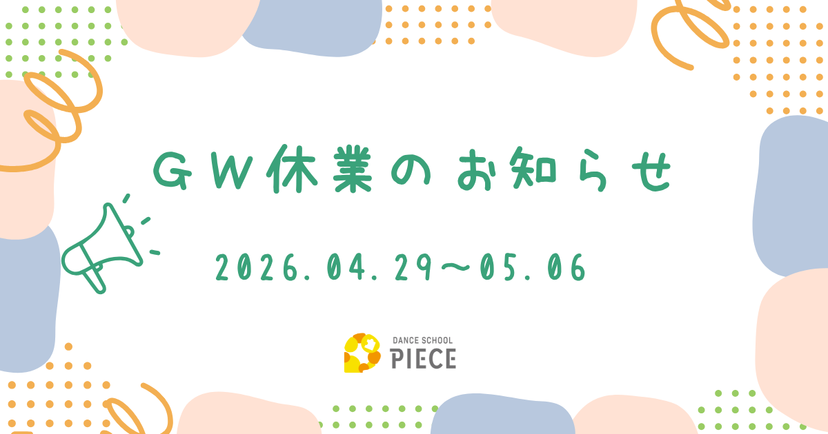 ダンススクールPIECEは、下記期間をゴールデンウィーク休業とさせていただきます。